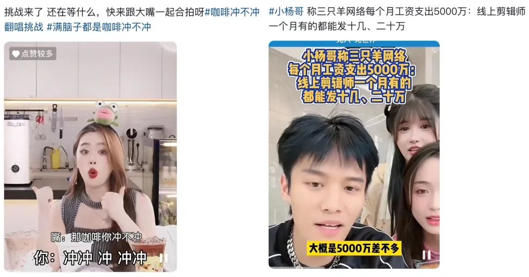 凌达乐这样的“乐子”也并非个例。以一句“咖啡你冲不冲”和标志大嘴走红的“大嘴妹”现在也已月薪三十万,前段时间刚提了自己的第一辆保时捷帕拉梅拉;早年还在厂子里干活的疯狂小杨哥,已经花1.03亿在合肥买楼,今年更是自曝月花5000万给高管发工资。