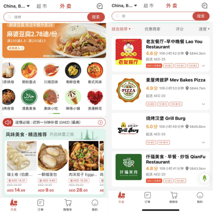 今年4月,迪拜当地最大的华人超市“WEMART温州超市”悄然上线外卖服务,覆盖当地几乎所有华人商家。体验过的中国人第一反应出奇一致: