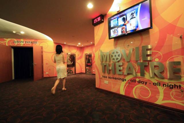 电影院 樟宜机场在T3与T2都建有电影院,旅客在候机时候可以观看自己喜欢的电影。为防止发生旅客误机的现象,樟宜机场费劲脑汁。为避免打扰到旅客观看电影的兴致,机场管理者并没有选择在影院内设置闹钟,而是在放映屏幕旁安装了一块巨大的数字表,旅客在看电影时能轻易看到时间。