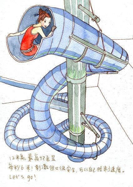 超级大滑梯 这里有全球机场中最高的滑道滑行体验,足足有12米高(相当于4层楼高),成年人也非常喜欢,足以见得有多么刺激。只要在机场内消费满10元新币,凭小票就可以体验滑道滑行。