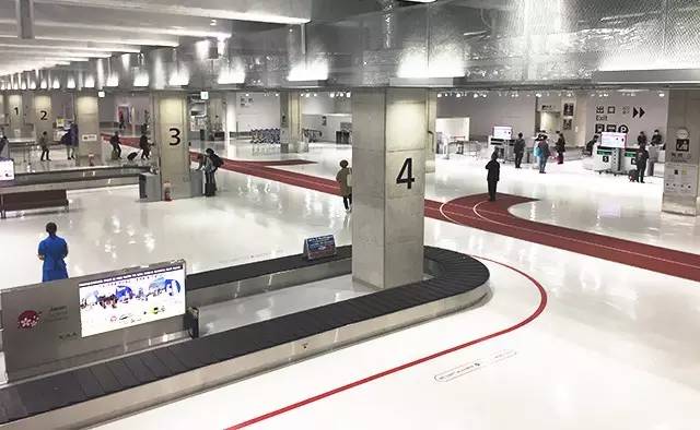 从T3到T2航站楼没有接驳车,旅客要徒步走到T2航站楼。当时小睿心里也是一万个抗拒的,但是当看到跑道的一瞬间,心里嘀咕着是不是好久没有跑步了,在跑道上走一走还能顺便锻炼身体,走一段路也无妨。于是顺着跑道上清晰简洁路标的指引,完成了托行李箱的负重竞走。能让旅客打心眼儿里不抗拒走远路这件事,成田机场T3航站楼的设计师可能还真懂点儿心理学。