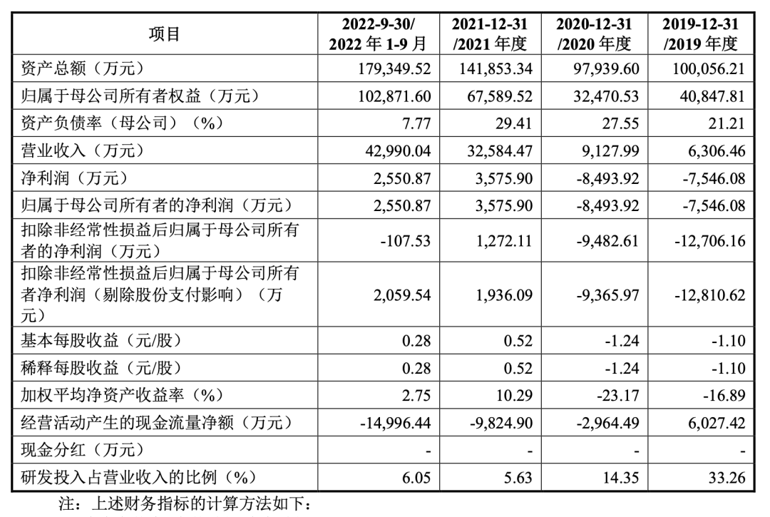 招股书显示,2019-2021年及2022年前三季度,中兴新材分别实现营业收入6306.46万、9127.99万、3.26亿、4.3亿元;净利润为-7546.08万、-8493.92万、3575.90万、2550.87万元。