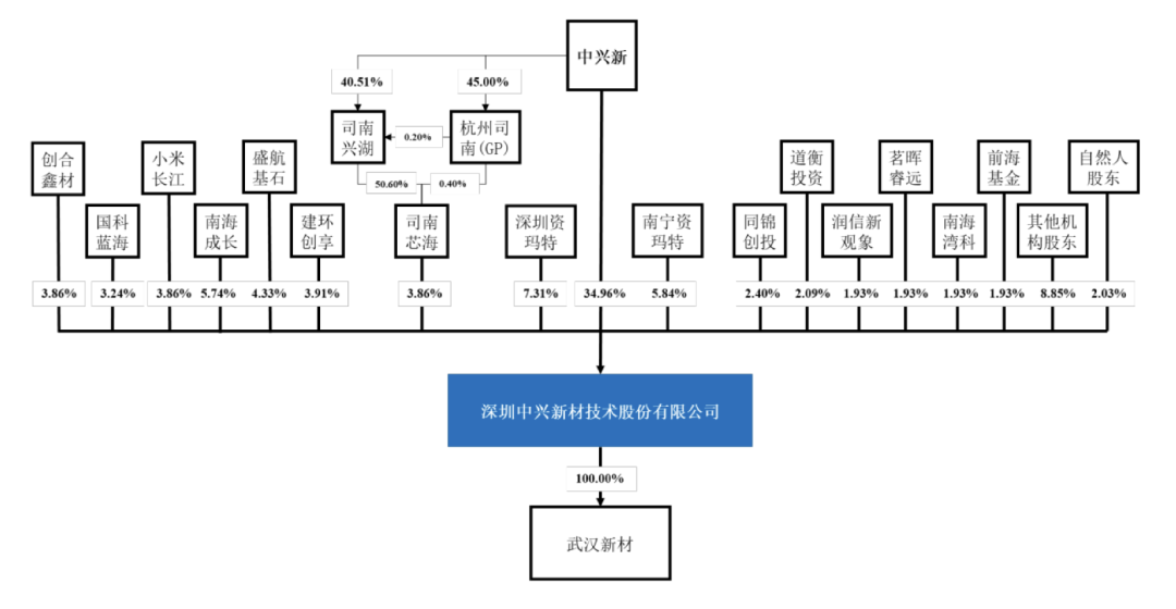 招股书显示,IPO前,基石资本持股4.33%,系中兴新材第五大股东;小米长江持股3.86%,与创合鑫材、司南芯海共同位列公司第七大股东。