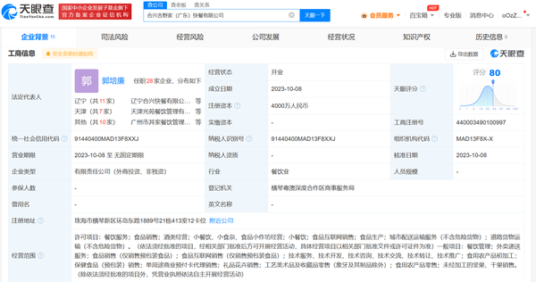 天眼查App显示,近日,合兴吉野家(广东)快餐有限公司成立,法定代表人为郭培廉,注册资本4000万人民币,经营范围含餐饮服务、食品销售、酒类经营、外卖递送服务、食品互联网销售等。股东信息显示,该公司由吉野家(中国)投资有限公司、天津强国健康科技有限公司共同持股。(天眼查)
