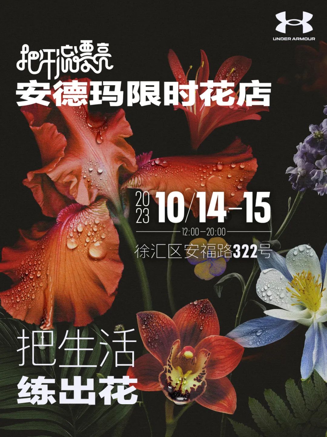 近日,美国运动品牌UNDER ARMOUR(安德玛)表示,10月14日至15日 ,“把汗流漂亮”安德玛限时花店将在上海市徐汇区安福路限时开张,现场除了可以通过参与各项趣味运动挑战获得鲜花之外,还有“花式”打卡拍照区及“花样”产品展示区。此外,安德玛“随行花摊”将穿梭于上海城中的运动街区,用鲜花惊喜犒赏热练的女性运动家。(品牌官方)