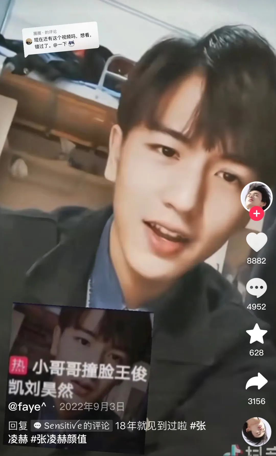 彼时抖音还是会给一些普通人流量的,不少人拿它记录生活,有些甚至当朋友圈发。张凌赫出道前的抖音号叫“张家玮”,那会儿脸上有婴儿肥但敢做各种奇奇怪怪的表情,还没变成如今的木头冷美人;那一年,刘宇宁也还在安东老街直播,尚未勇闯娱乐圈变成古装OST包工头。