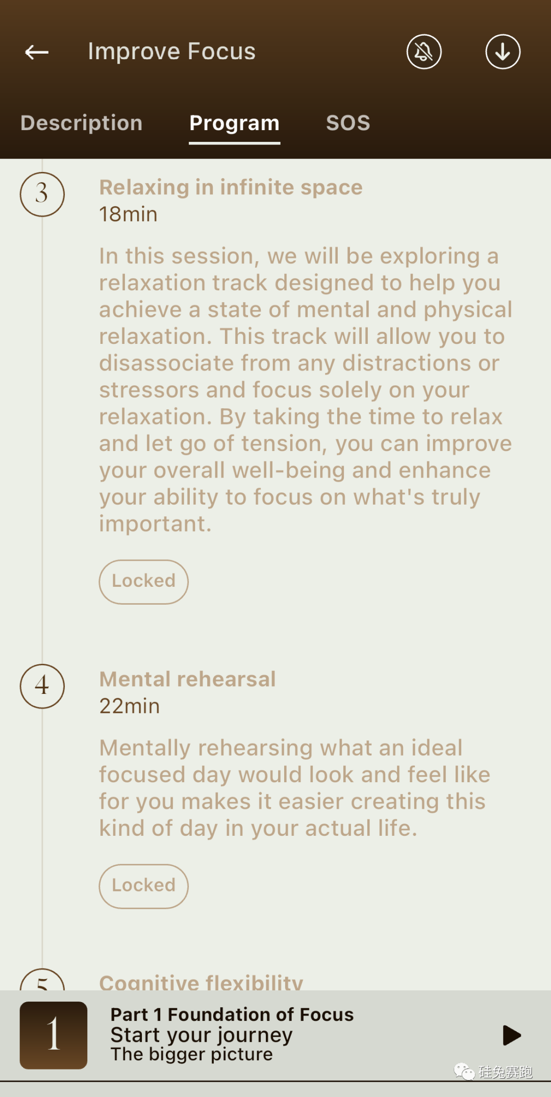 而想要提高专注力的用户则会在催眠疗法的引导下学习如何放松认知、无戒备的放松、合理规划日程和减少拖延等技巧。