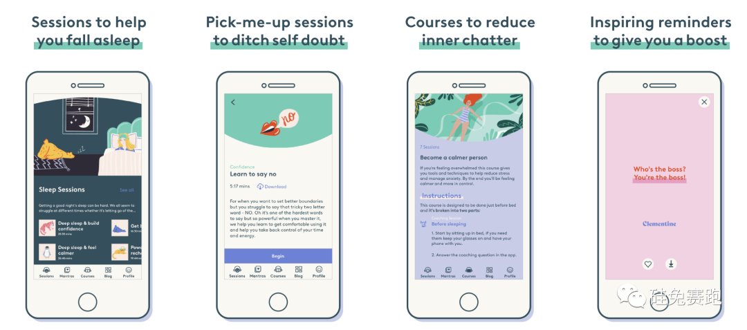 此外,这一赛道融资较多的还有专为女性用户解决失眠、自我怀疑、焦虑和自卑等问题而开发出催眠疗法的ClementineApp