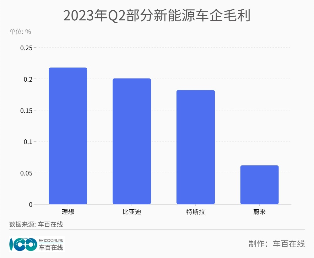 粗略统计,在新能源车企中,从造车到走向盈利,比亚迪用了近20年,特斯拉用了18年左右,而理想仅仅用了7年时间。理想的盈利,从某种意义上说,与增程式路线的低成本特点有较大关系。理想第二季度毛利率稳中达到21.8%,已经超过了特斯拉的18.2%。