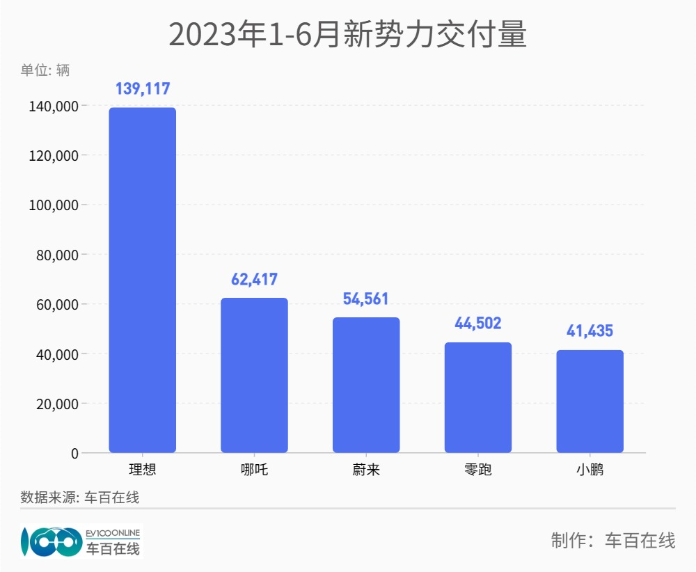 2023年上半年的车企销量排行中,理想已经上升为新势力第一,超过了哪吒汽车。