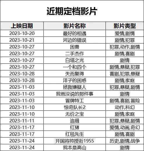 冷意虽甚,倒是给了一批竞争力有限的项目额外信心。这不,近几日,一批新片扎堆官宣定档,一头扎进10月下旬到11月这个冷档期里。而在此前定档的项目中,也有影片勇敢提档,决定提前接受观众审判。