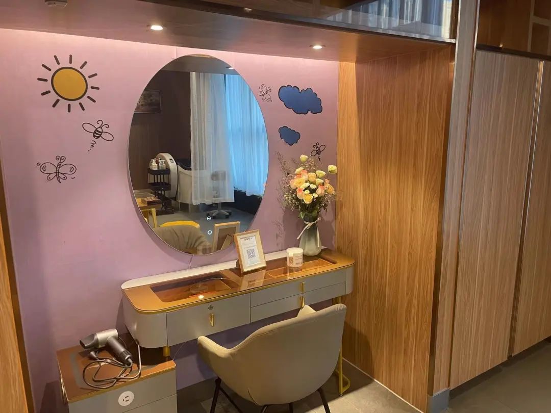 服务指南上写着,洗发后店员会提供吹干和编发服务(一般给儿童),不过,镜子前的桌子目前还是光秃秃的,没有配备精油等护发产品,因此,还不能做什么造型,只能简单吹干。