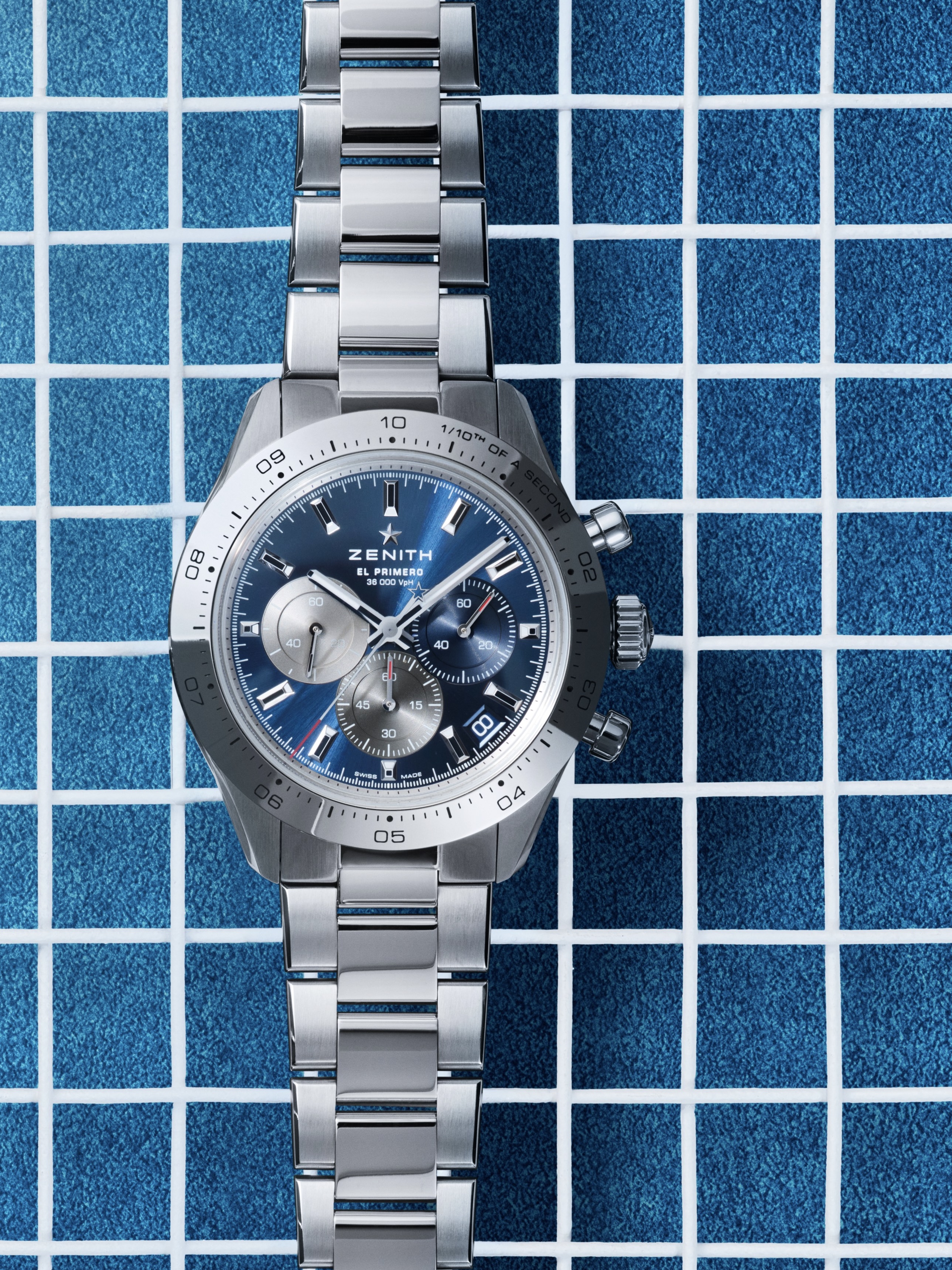 ZENITH真力时CHRONOMASTER SPORT腕表精钢款系列新作以全精钢表壳设计,搭配引人瞩目的金属蓝色色调三色表盘。