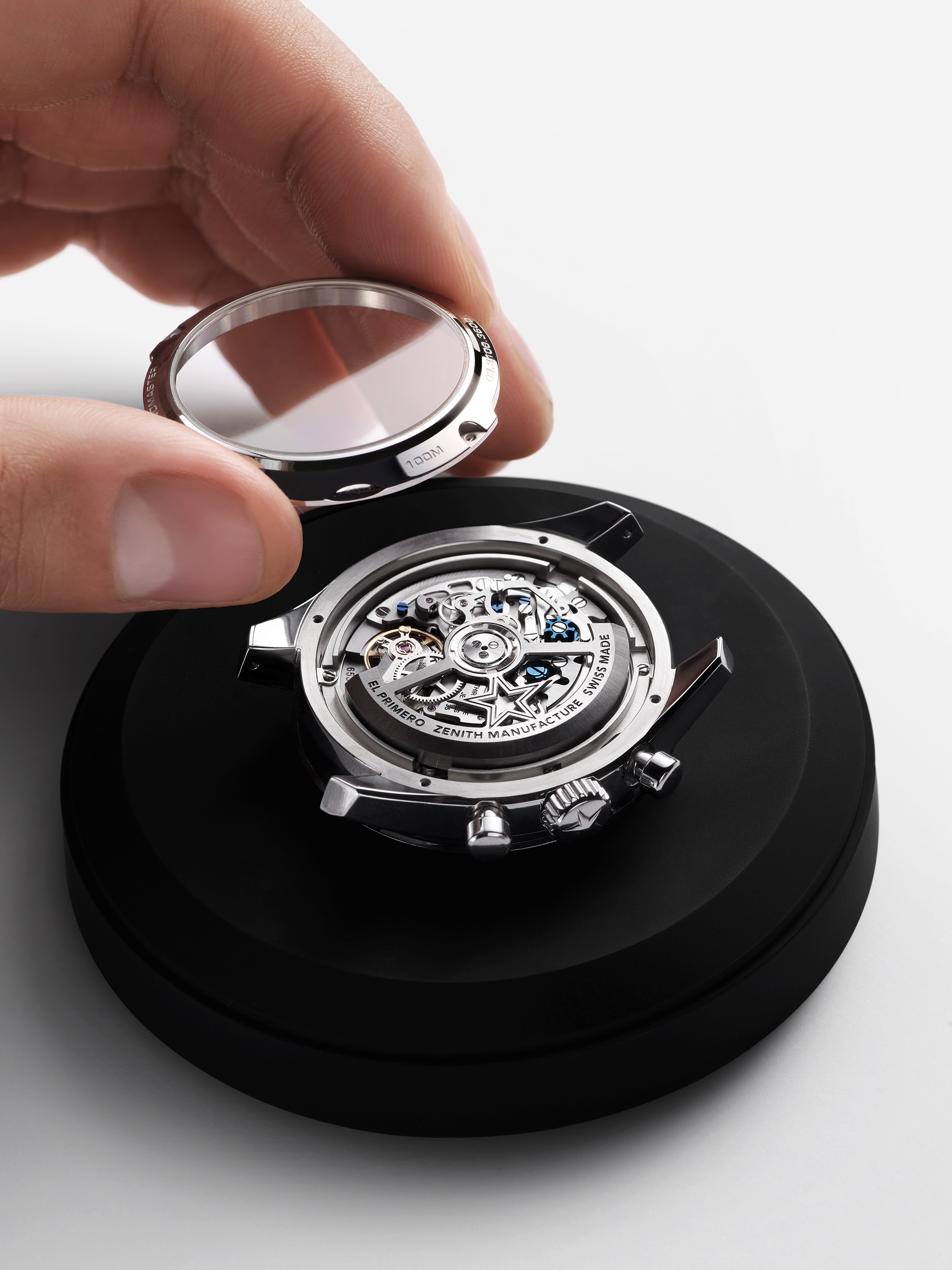 全新ZENITH真力时CHRONOMASTER Sport腕表精钢款首次在附设泵式按钮的41毫米直径精钢表壳上,搭配采用精钢而非陶瓷制作的1/10秒刻度表圈。其抛光表面与黑色填涂镌刻的表圈刻度相映成趣,流露出明晰的复古情调。