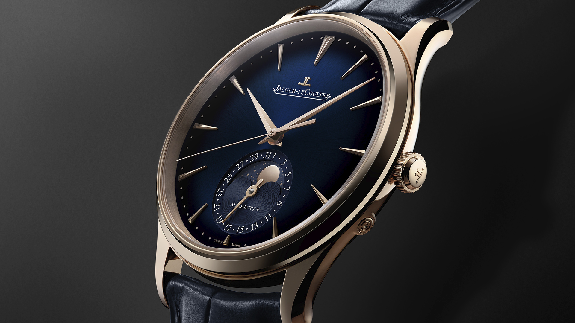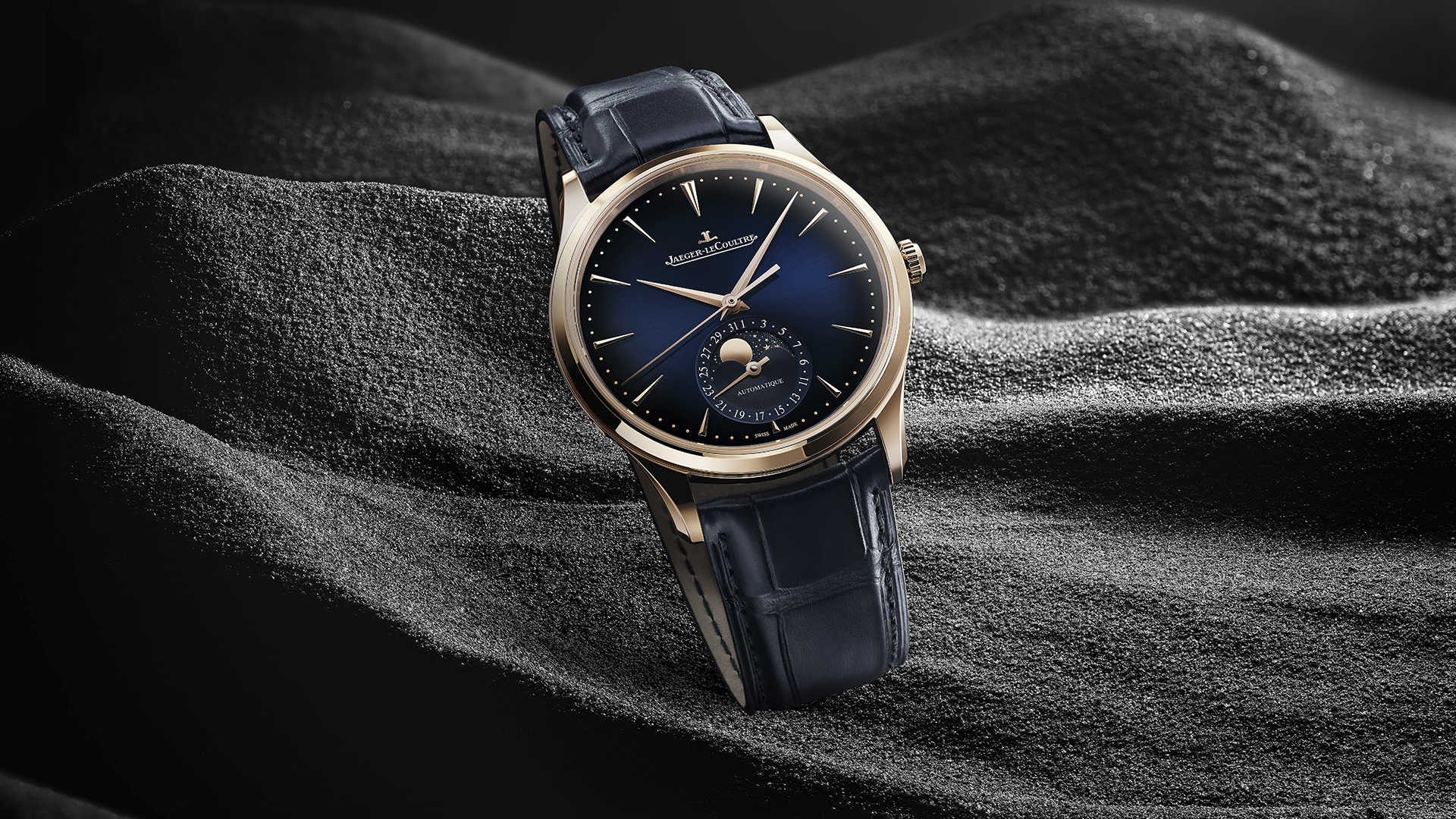 积家推出配备渐变蓝色表盘的玫瑰金款MASTER ULTRA THIN MOON超薄大师系列月相腕表,腕表采用流线型设计,搭配渐变午夜蓝色表盘。太阳放射状饰纹,与浓郁的渐变蓝色表盘以及温暖的玫瑰金表壳形成鲜明对比,为隽永优雅的设计增添视觉修辞。