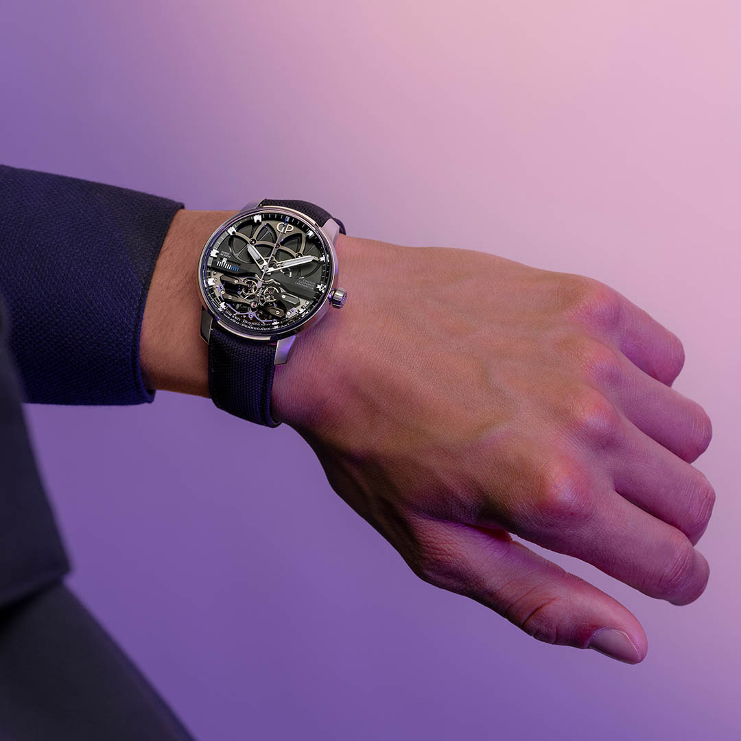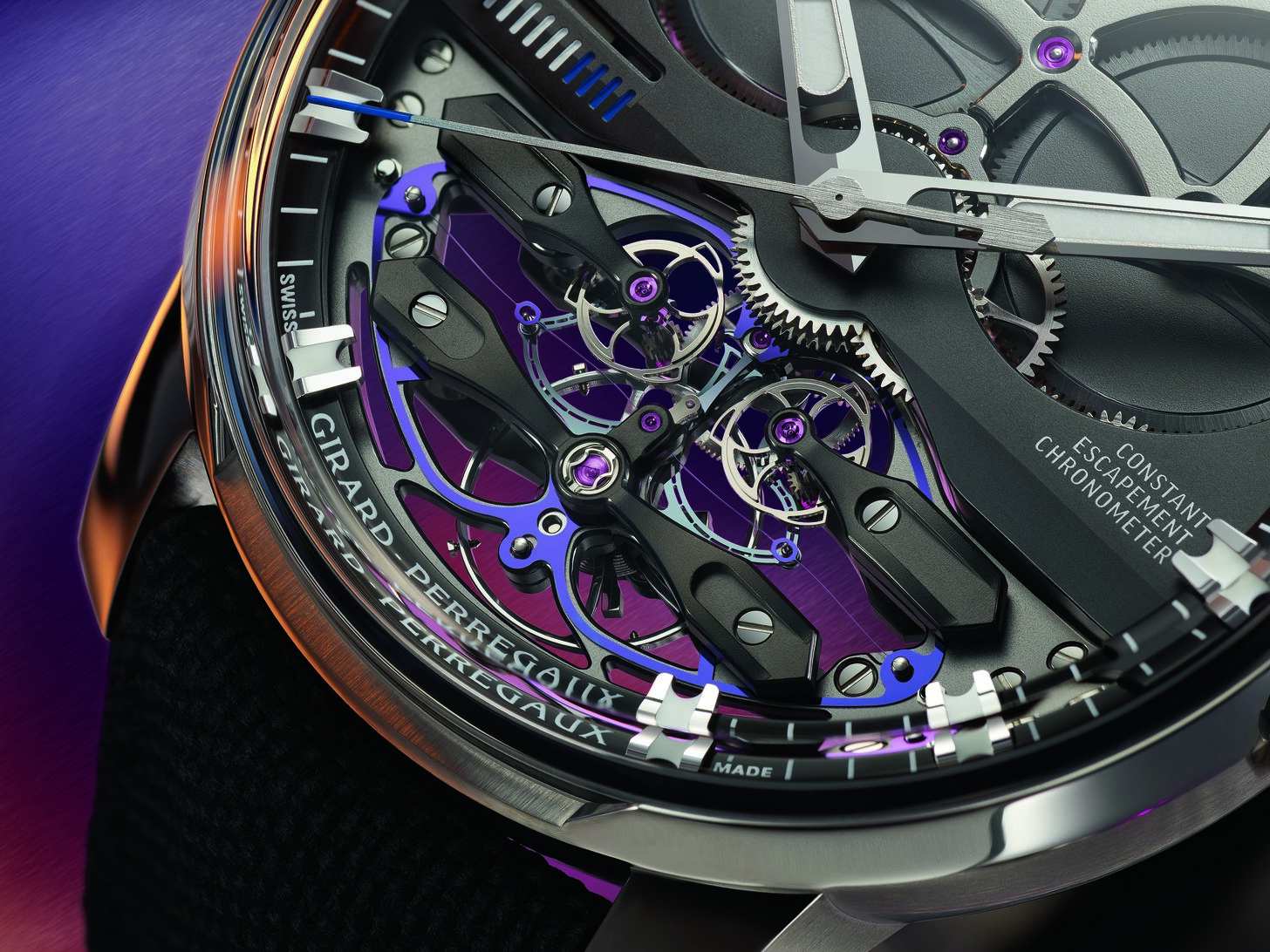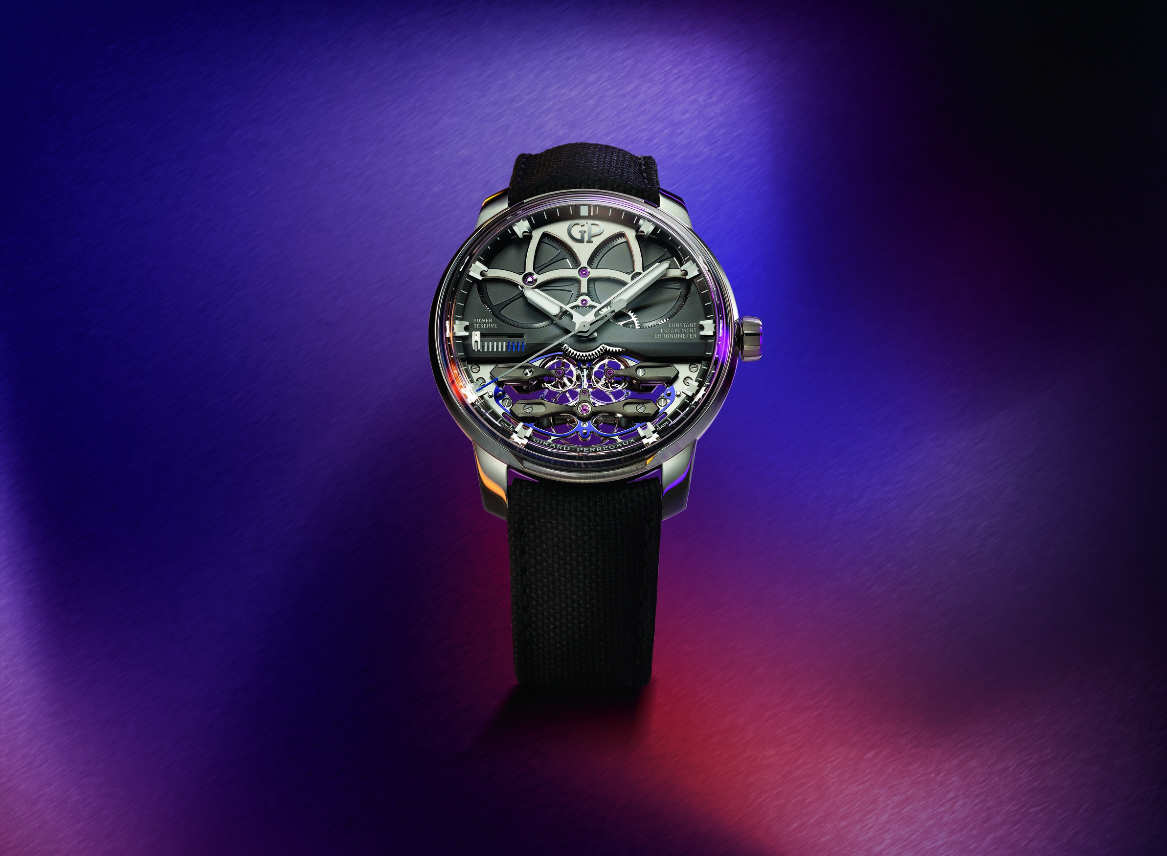 GP芝柏表新恒定动力擒纵腕表(Neo Constant Escapement) 颠覆传统表盘设计,将隐藏的功能性部件外露,尽显摩登前卫风格。恒定动力擒纵装置,能够不受可用能量影响,提供非凡的速率稳定性。