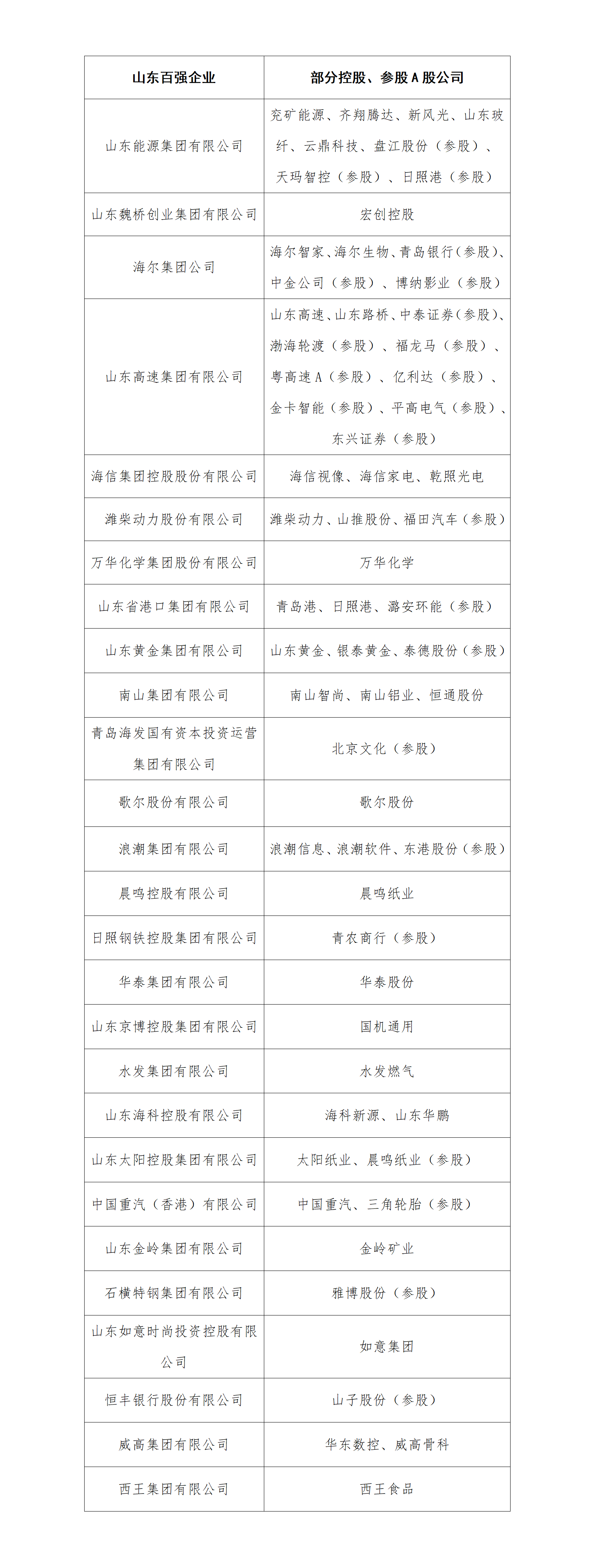 近日,山东省工业和信息化厅日前公示2023山东省百强企业名单。记者初步统计,此次上榜企业中有40家在A股市场已有布局,涉及控股、参股的A股公司数量72家。Wind资讯的统计数据显示,这72家公司合计市值已超过1.7万亿元,可见资本平台给企业带来的积极效应。