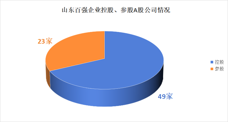 从数量上看,2023山东百强企业控股A股公司的数量达到49,参股公司数量达到23家。