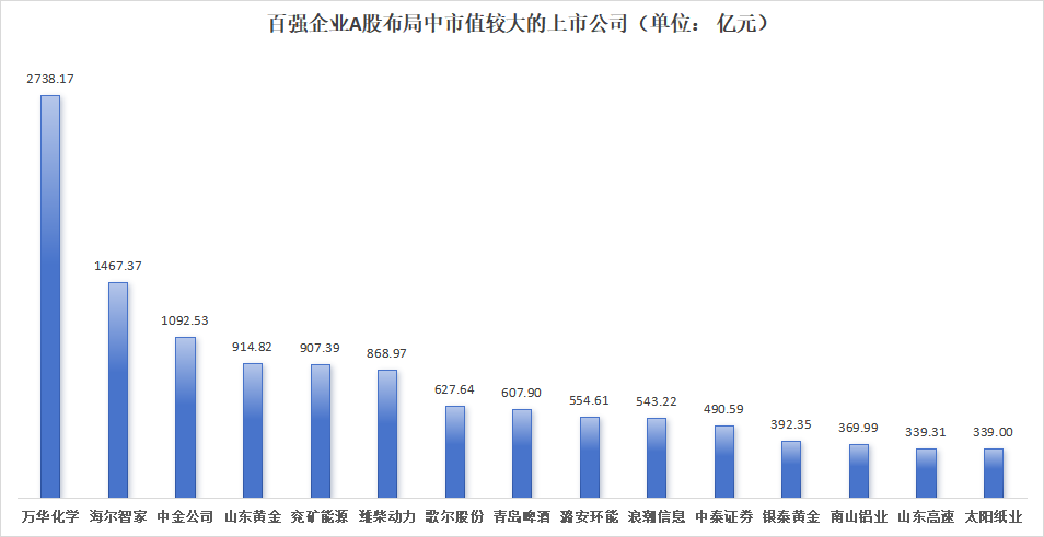另外,山东黄金(600547.SH)、兖矿能源、潍柴动力(000338.SZ)、歌尔股份(002241.SZ)、青岛啤酒(600600.SH)的市值虽未触及1000亿元的关口,但也都站在500亿元之上。