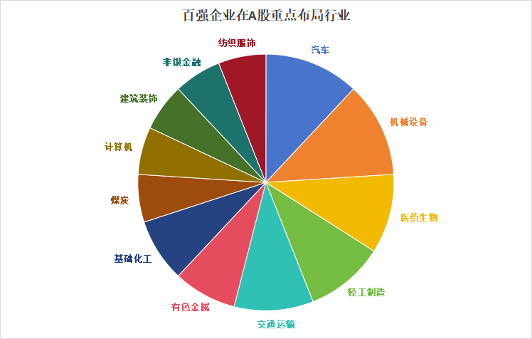 从行业分布(按照申万行业)情况看,百强企业布局的A股公司中,汽车和机械设备排名靠前,均为6家;医药生物、轻工制造位列其后,为5家;有色金属、基础化工则分别为4家;煤炭、计算机、建筑装修、非银金融、服饰纺织都是3家;还有部分行业只有2家或1家。