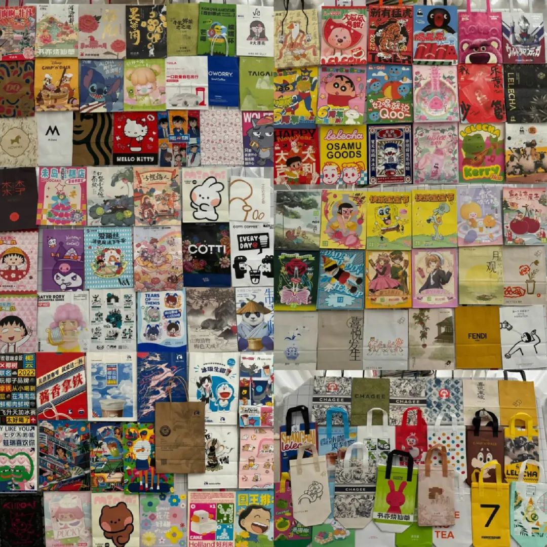 断断续续到现在,我已经收集了六七十个袋子,花费五千多元。这些袋子,有的是我自己喝联名奶茶喝来的,有的是出去旅游时喝当地奶茶店的城市限定喝来的,有的是朋友喝了联名奶茶把袋子送给我的,还有的是我在二手市场买来的。