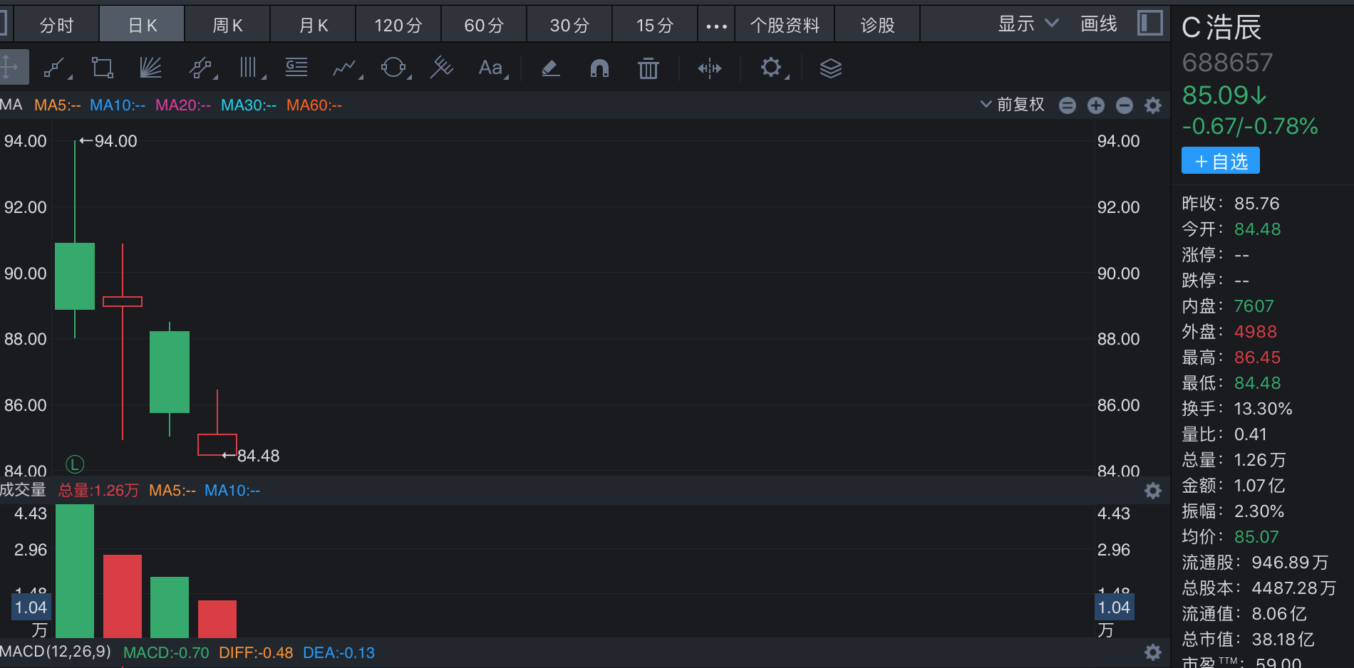 在历经4个交易日后,浩辰软件股价已跌落至85.09元。据悉,回拨机制启动后,浩辰软件网上发行最终中签率为0.05865985%。当时网上投资者有23.57万股弃购,弃购部分由保荐人(主承销商)包销。