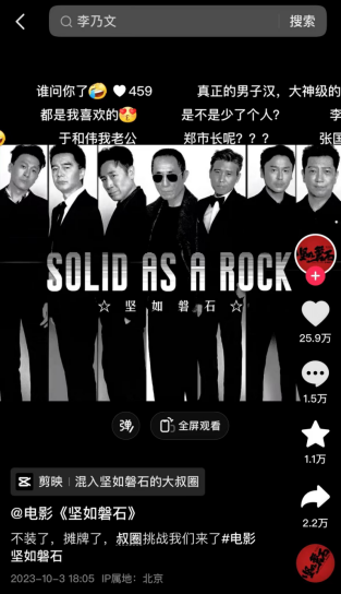 官抖的高赞评论里,有人指出这部电影是“拼图式”电影:电影院看一半,抖音看一半。而这种“拼图式”营销也的确让《坚如磐石》在国庆档后有了持续的讨论热度与关注度,国庆档之后这一周,《坚如磐石》一直是微博平台讨论量第一,也在10月10日超过《前任4》成为官抖排名第一的电影。