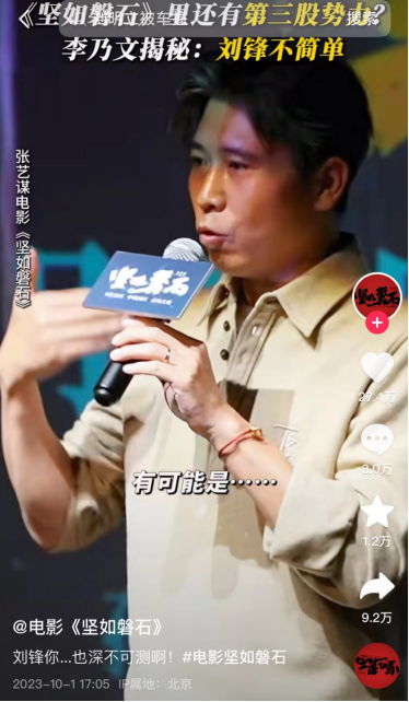 配合着这些动作,宣传方也主动营销话题#发现坚如磐石新线索##坚如磐石中隐藏的细节##李乃文说刘锋得留一手#等,引导观众去发现影片中可能被删除的部分。