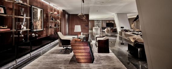产权面积达约800平方米的超大空间,中西双厨、独立收藏区、极致会客厅,来自于欧洲奢侈品牌的装甲门、卫浴、厨电设施,智能家居及空调、新风、地暖系统……无论是有形可创造的建筑,还是蕴藏于空间之中的无形品位,天幕行政公馆都拥有非同一般的标准。