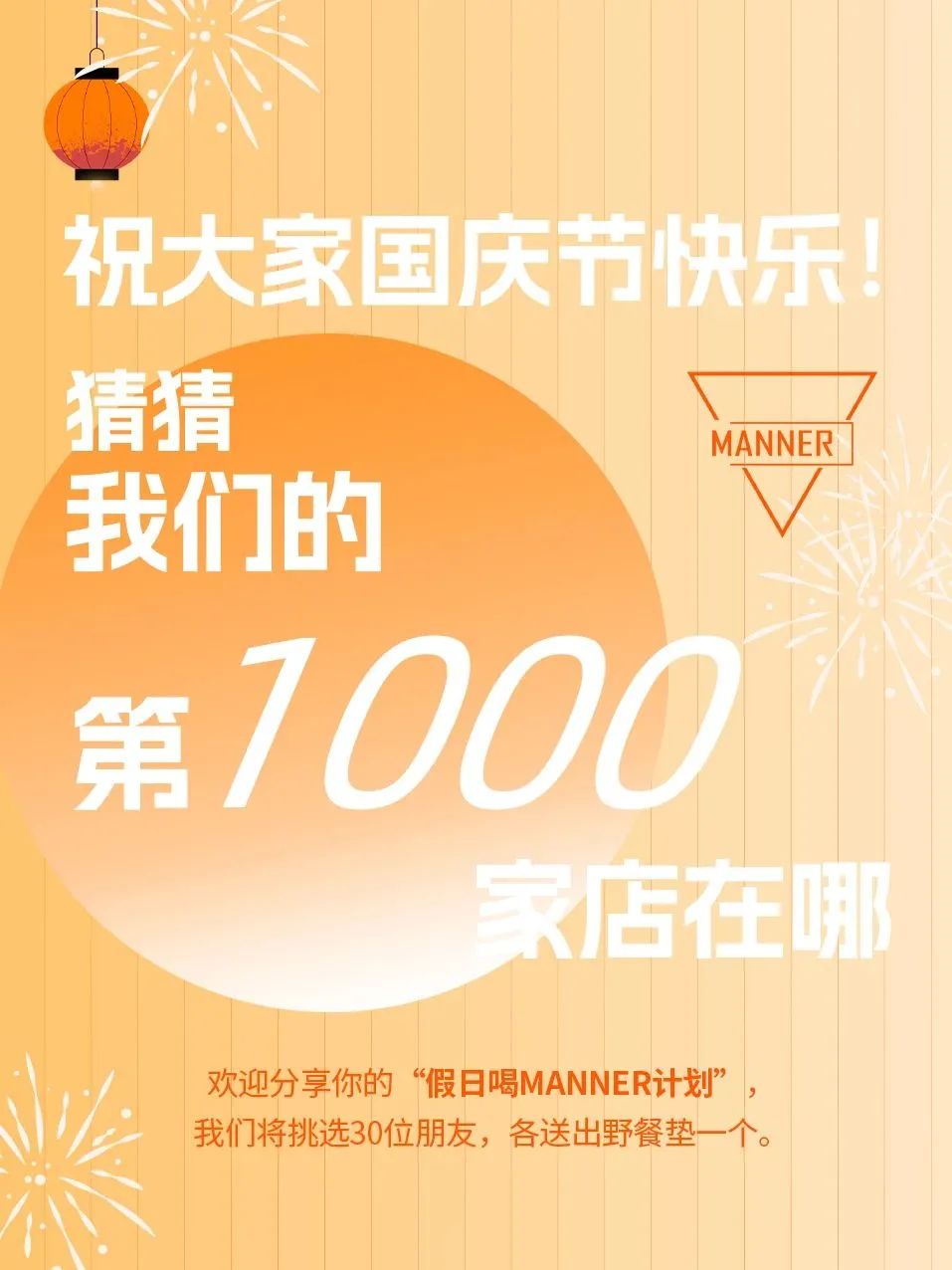 9月30日,Manner官方微信发布了一条消息“我们的第1000家店,马上来了”。