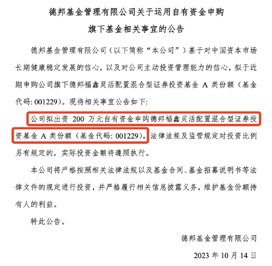 A股仍在震荡磨底。10月14日,德邦基金公告,公司拟出资200万元自有资金申购德邦福鑫灵活配置混合型基金A类份额。