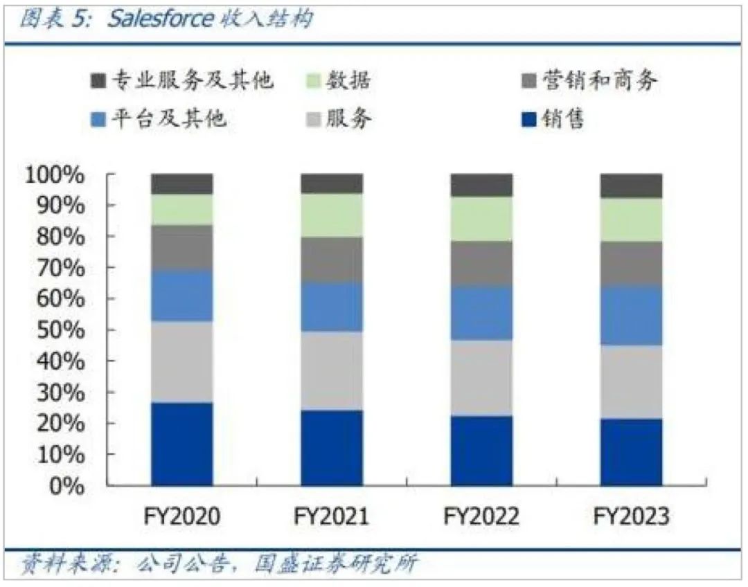 可以看到,目前该部分收入(平台及其他收入)成为Salesforce的第三大收入来源。