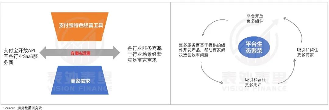 对切入SaaS生意,支付宝的决心不可谓不足:要做的是去中心化、以商家为中心的开放生态体系,重点在于如何满足商家经营的诉求。