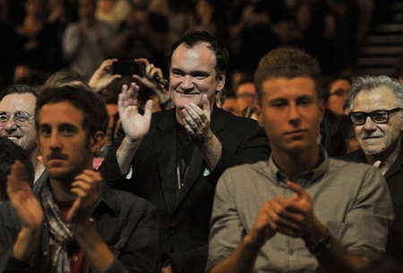 原本以为,到场观看的应该只有唐人街那些喜欢张艺谋的老华人,但没想到,记者却在观众席最后面发现了喜欢看烂片寻找灵感的昆汀大导演。
