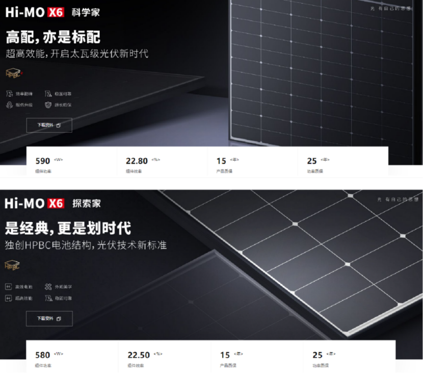 隆基新品HI-MO X6系列产品参数情况,来源:隆基官网