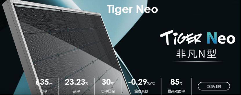 其中,N型路线龙头晶科能源(688223.SH/JKS.N)的TOPCon电池实验室转化效率达到26.4%,量产效率超25.5%。早在今年初晶科能源发布其爆款产品——第二代Tiger Neo系列组件,高配就已经能达到635W功率和23.23%组件效率。