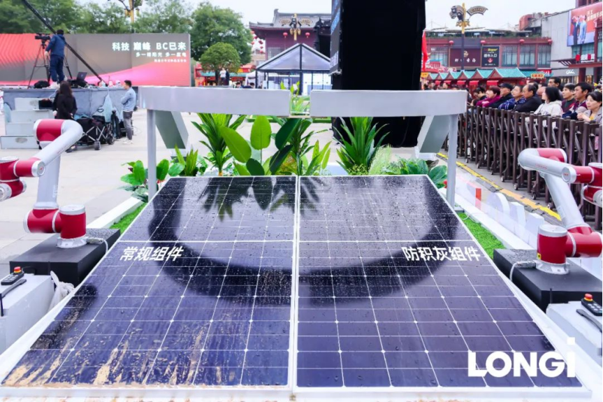 既然做不到在组件技术和性能上超越同行,隆基只能另辟蹊径,选择在制造工艺环节下功夫。为此,隆基把“防积灰”功能作为此次新产品的最大亮点。