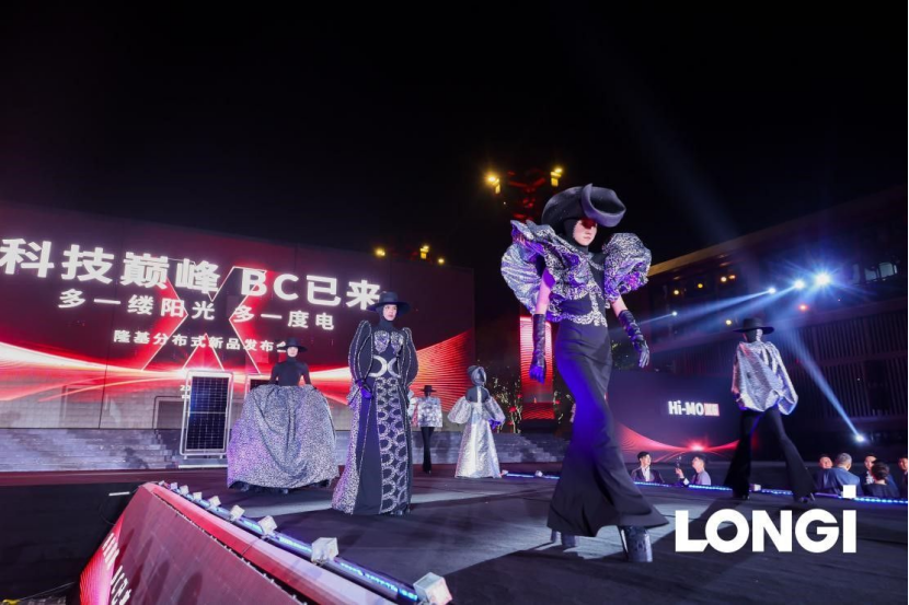 相比之下,还是模特走秀更有看头。本次发布会上,隆基邀请到知名设计师团队,量身定制出一场时装光影大秀。