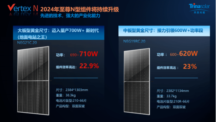 另一家N型电池龙头天合光能(688599.SH)代表产品至尊N型2024升级版组件效率也可达到23%。今年8月,天合光能又推出业内首个量产功率突破700W的新一代N型i-TOPCon电池技术,其实际电池量产效率进一步攀升至25.8%。