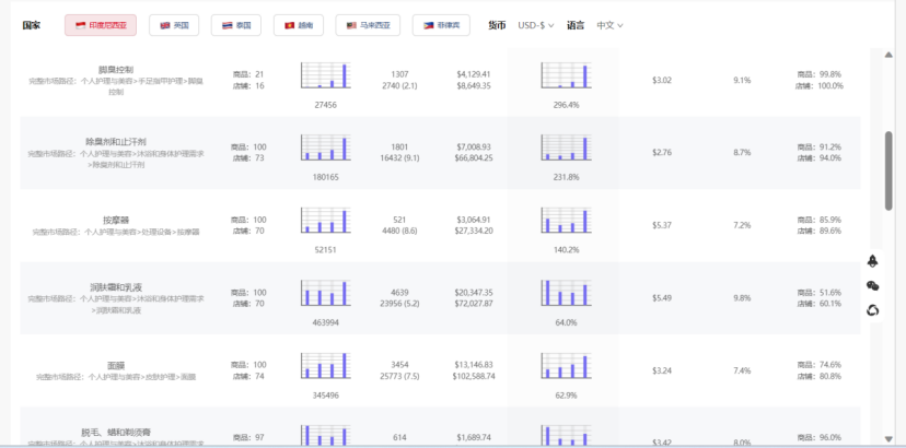 TikTok数据平台“UTen”显示,在个人护理与美容赛道,印尼的除臭剂、按摩器、润肤霜等细分产品正在印尼市场快速增长。