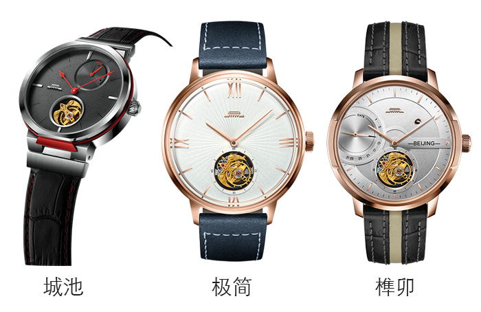 城池主题的潜锋系列腕表,搭载北京飞行陀飞轮机心 TB01-2DN ,在表壳与表带“潜”藏了一个城台的形状,从侧面看,一座天安门跃然眼前。极简主题的潜锋系列腕表,搭载北京飞行陀飞轮机心 TB01-2 ,打破陀飞轮的传统形式,从极简东方美学中汲取灵感,用纤细的线条带出丰富的层次,充满现代时尚气息。榫卯主题的潜锋系列腕表,搭载北京飞行陀飞轮机心 TB01-2FN ,将东方工艺美学——榫卯结构运用到表壳、底盖的设计中,特殊的圈口造型,方寸之间更加开阔与通透,将平衡的美学发挥到极致性。