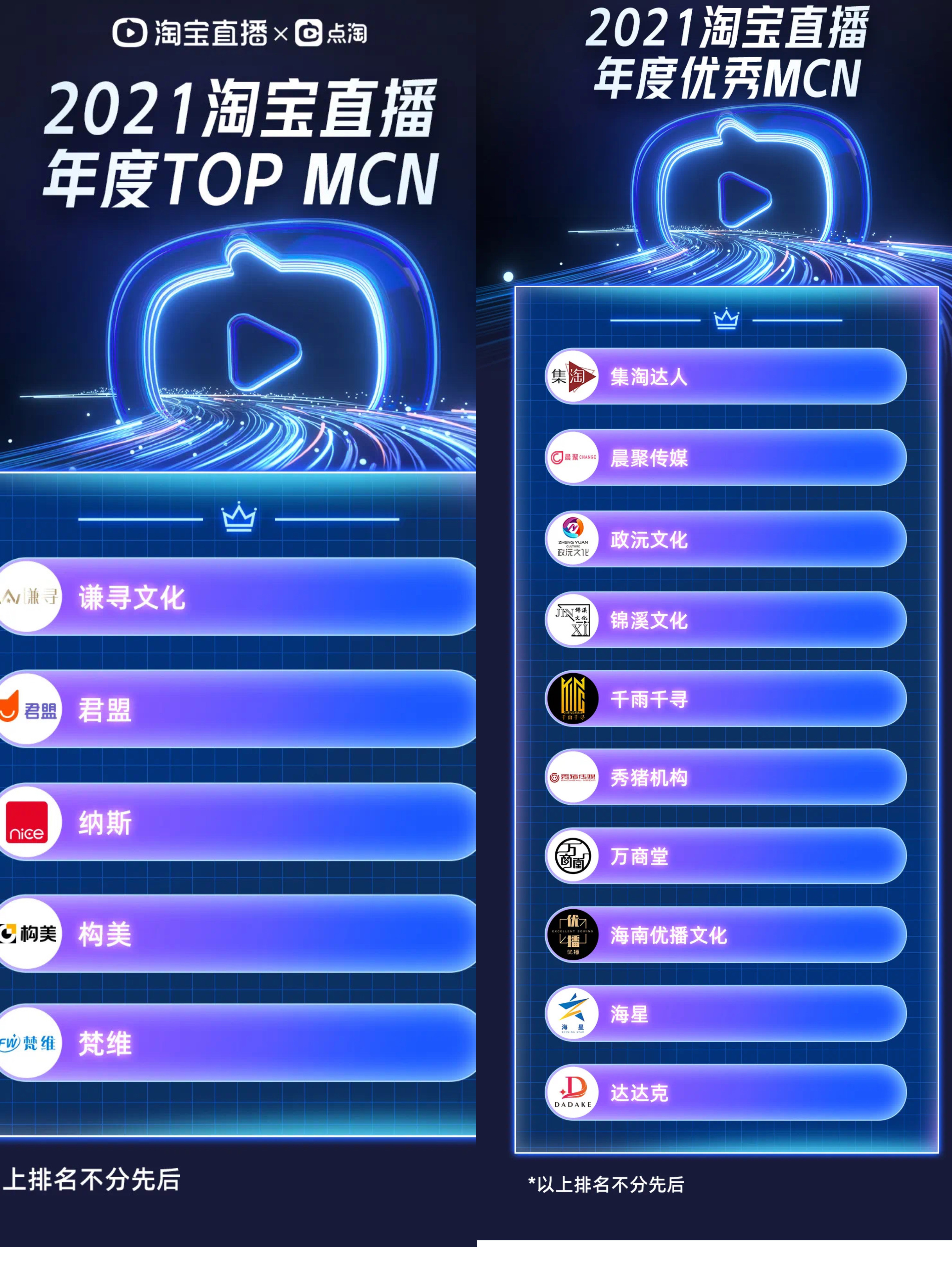 9月淘宝直播省点获奖名单中,年度TOP MCN、年度优秀MCN、年度垂类影响力MCN都没有美one的身影。年度TOP主播、年度最具商业价值主播、年度最具影响力红人主播、年度公益影响力主播也没有李佳琦的身影。