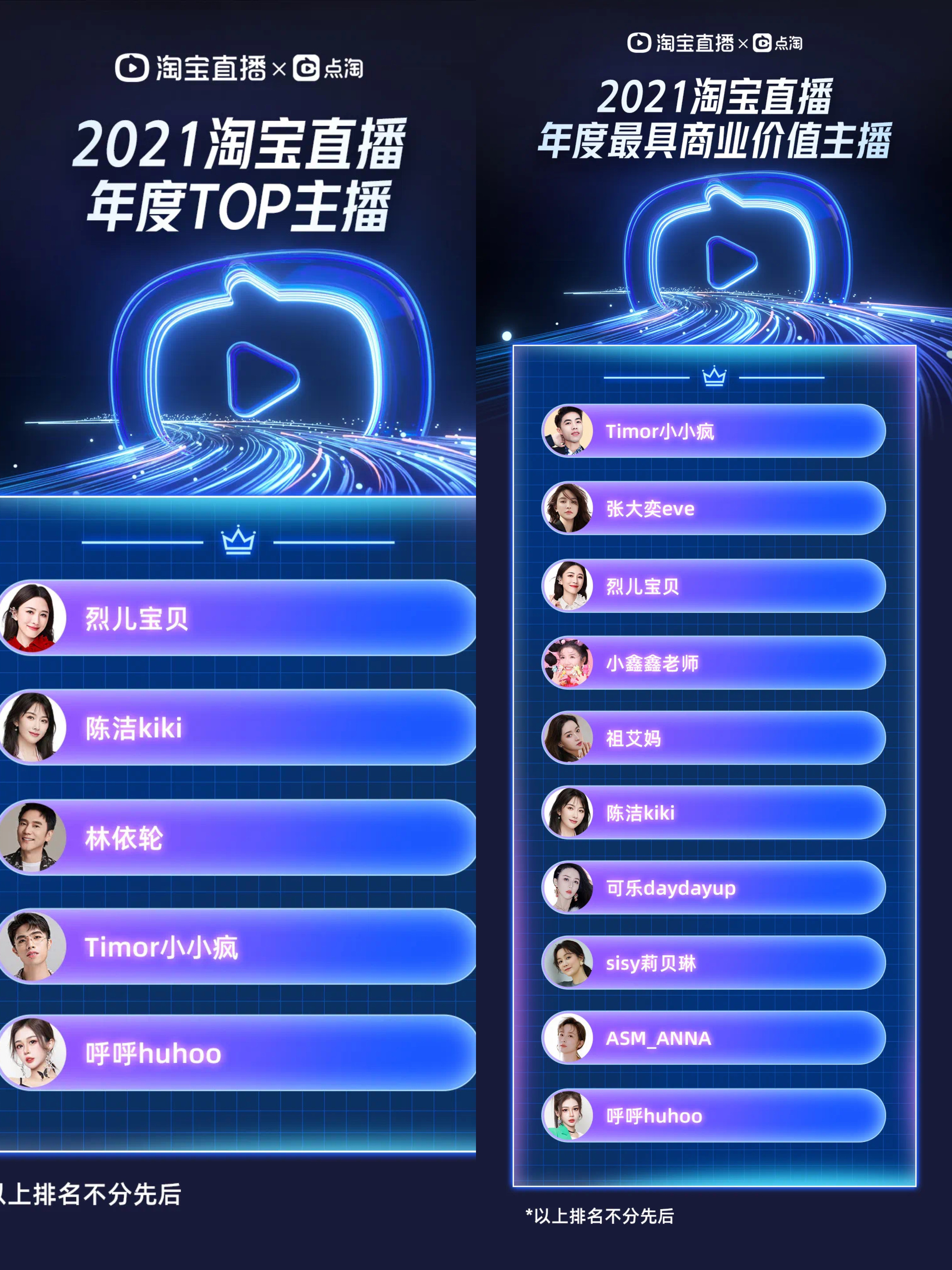 淘宝对超头主播的压制,对中腰部主播和品牌自播的扶持是全方位的。新响统计发现,在近一年淘宝官方公布的各大榜单上,已经很少出现李佳琦及其所属的美one的身影了。