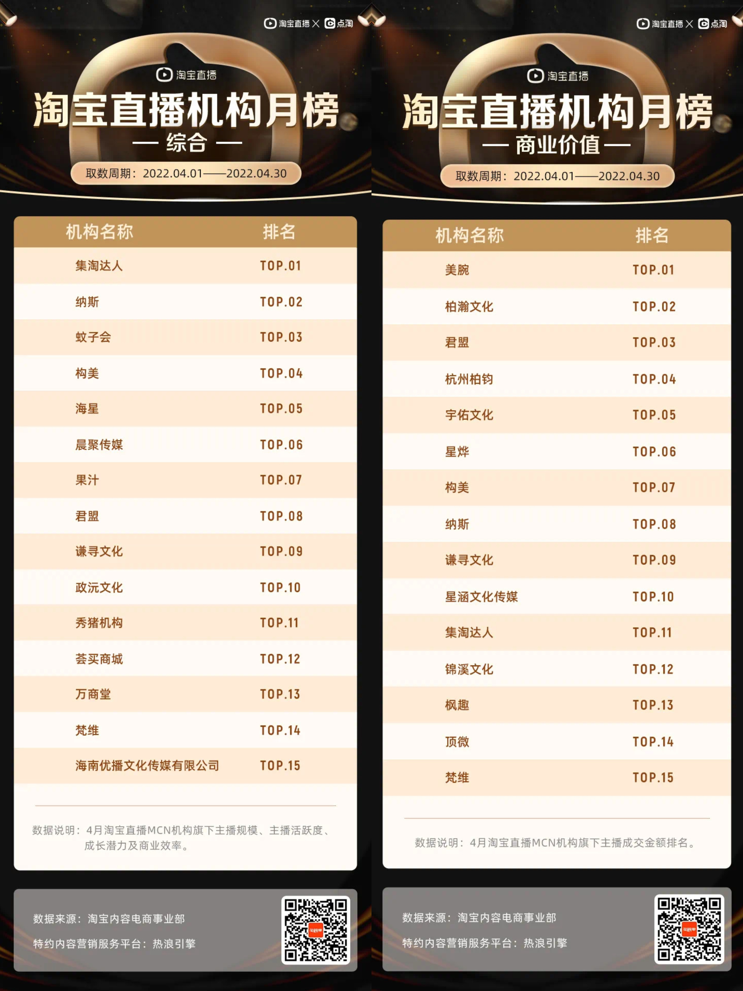 5月公布的直播机构综合月榜,美one不在其中,依据是主播规模、活跃度成长已经潜力及商业效率。商业价值月榜中,美one排名第一,依据是成交金额。