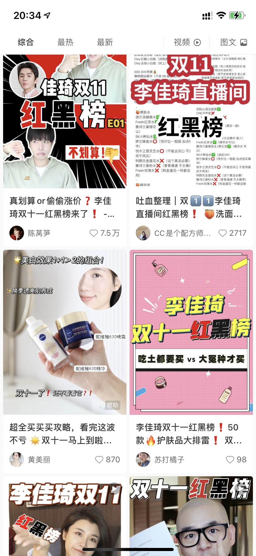 在多个社交平台上,与往年对李佳琦直播间一片盛赞不同,今年,很多网友和博主出现了更多理性的声音。在小红书上,有不少关于李佳琦直播间产品是否“划算”、排雷“红黑榜”的讨论内容。