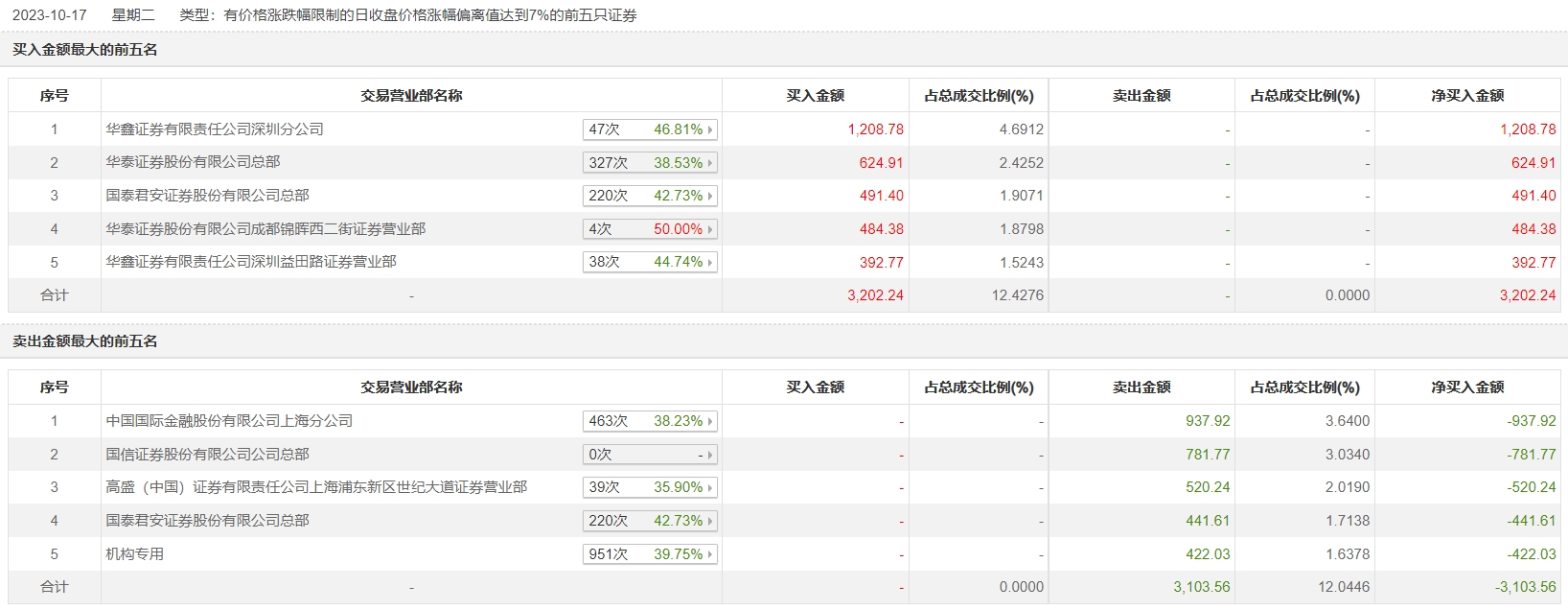 其中,机构合计净卖出422.03万元。此外,华鑫证券深圳分公司、华泰证券总部分别买入1208.78万元、624.91万元;中国国际金融上海分公司、国信证券公司总部分别卖出937.92万元、781.77万元。