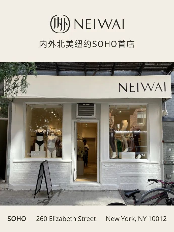 近日,内衣品牌NEIWAI内外宣布北美首店正式开业,门店坐落于美国纽约曼哈顿SOHO商区的伊丽莎白街。同时,这也是NEIWAI 内外第二家海外线下门店。