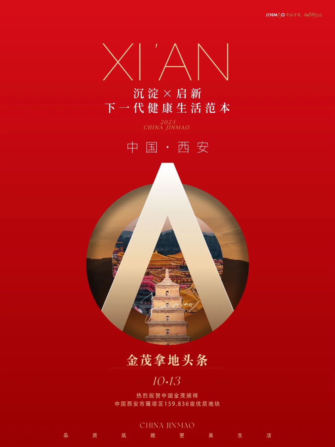 金茂西安,为健康生活步履不止。2023年10月13日,中国金茂摘得西安市雁塔区159.836亩优质地块。金茂迎来了第五子,将以全新面貌始终先于时代步伐,洞察人居需求,以不断进阶的科技创造共鸣城市,回馈每一位金茂家人更加健康、更加尽致的生活。