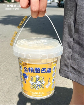 同样借势高考话题,甜啦啦也推出“金榜题名桶”寓意好成绩,主打一个考运爆棚,其关联产品热卖200万杯。