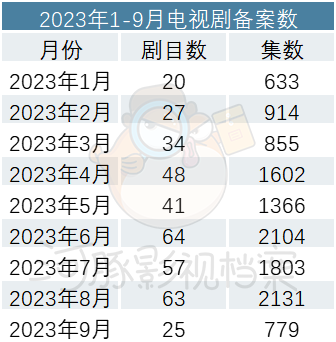 根据广电总局最新发布的全国拍摄制作电视剧备案公示,2023年9月,全国电视剧拍摄制作备案公示的剧目共25部、779集。